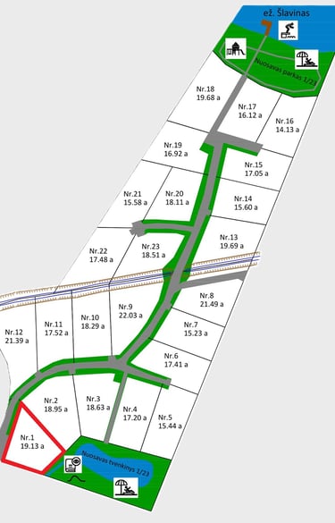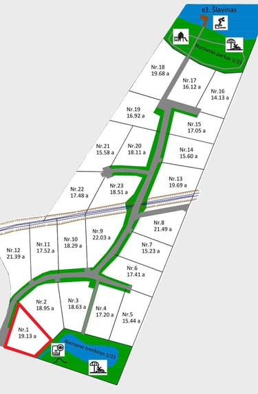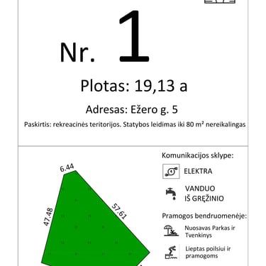 Šis sklypas unikalus tuo, kad viena kraštine ribojasi su bendru sklypu, kuriame yra tvenkinys. Todėl būsite apsupti artimu nuostabiu kraštovaizdžiu. Pasistačius sodybą, pro jos langus atsivers nuostabus vaizdas į ežerą ir į tvenkinį, todėl galėsite mėgautis kavos puodeliu bei pasakiškais vaizdais. Sklype jau auga subrendę vaismedžiai.