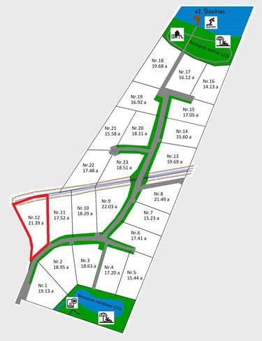 Sklypas yra per vidurį bendruomenės, todėl patogiai galėsite pasirinkti ar eiti pailsėti prie ežero, ar prie tvenkinio. Būsite apsupti artimu nuostabiu kraštovaizdžiu. Pasistačius sodybą, pro jos langus atsivers nuostabus vaizdas į ežerą ir miškelį, todėl galėsite mėgautis kavos puodeliu bei pasakiškais vaizdais