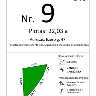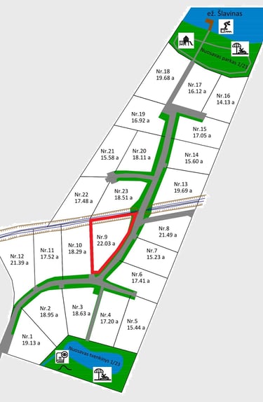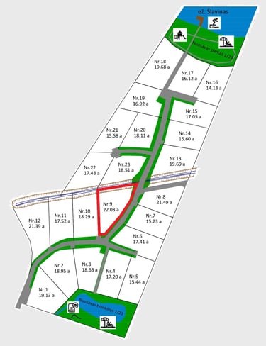 Sklypas yra per vidurį bendruomenės, todėl patogiai galėsite pasirinkti ar eiti pailsėti prie ežero, ar prie tvenkinio. Būsite apsupti artimu nuostabiu kraštovaizdžiu. Pasistačius sodybą, pro jos langus atsivers nuostabus vaizdas į ežerą ir miškelį, todėl galėsite mėgautis kavos puodeliu bei pasakiškais vaizdais